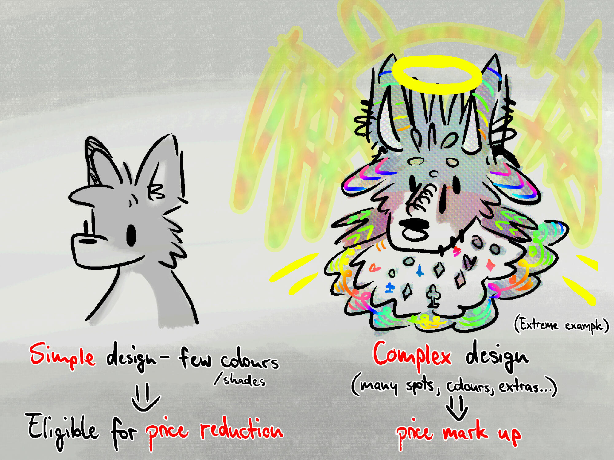 ❖❀~ Other Prices ~❀❖While it is hard to find a good resting ground for that, please note that I will make a small upcharge for characters with More Details, Complex Colouring and (Fur) Patterns, Accessories or "Additional Appendages" (wings, multiple arms / legs etc.), if it is important to you to not simplify those details.